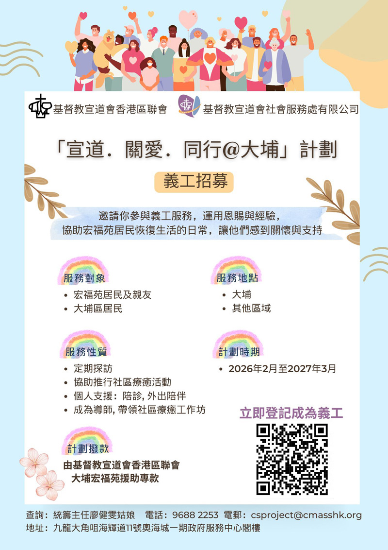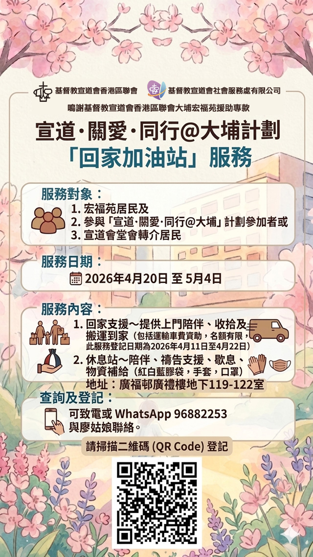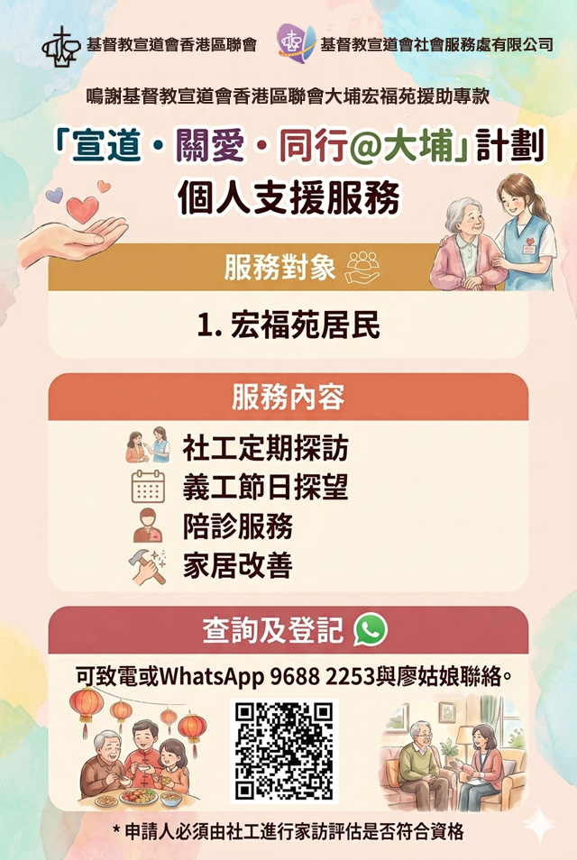 由「基督教宣道會香港區聯會大埔宏福苑援助專款」撥款